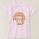 Trendy boho cat T-shirt with a kawaii kitten in earthy tones. Features a retro 70s sunburst and arch motif on a neutral palette. A minimalist design perfect for cat lovers and vintage style fans.