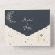 Feiern Sie unter den Sternen mit dieser himmlischen Hochzeitseinladung, die mit einer romantischen Marinestube und einer goldenen Mondillustrierung, skurrilen Sternakzenten und modernen geometrischen Konfetti aufwartet. Das einmalig gefaltete Format umfasst UAWG Details, einen benutzerdefinierten QR-Code und Foto-Slots für eine personalisierte Touch. Ideal für Stargazer, Astrologe-Liebhaber oder Hochzeitsfeiern mit Himmelsrichtung. Dieses Design ist bequem und elegant - ideal für Boho-, Mystische- oder Nachtfeiern inspiriert. Bitte beachten Sie: Diese Einladung erfordert einen separaten Briefumschlag. Wir empfehlen die Verbindung mit einem A9-Umschlag (5,75" x 8,75") für die beste Passform.