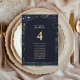 Helfen Sie Ihren Gästen mit dieser himmlischen Hochzeitskarte, ihren Platz unter den Sternen zu finden. Mit einem tiefen Nachthimmel der Marine, goldenen Sternen, elegantem Drehbuch und moderner Typografie verbindet diese doppelseitige Karte eine Tischnummer mit einer personalisierten Gästekarte. Ideal für sternige Nächte, himmlische Hochzeiten und Hochzeiten, die Schönheit und Organisation in Ihre besondere Nacht bringen. Doppelseitiges Design perfekt für hausgemachte oder draußen himmlische Feiern.