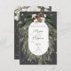 Dieses Design besticht durch eine rustikale grüne Kiefer und einen Pinecone-Bouquet auf einem Holzkohleboden mit weißen Blume. Es wird durch ein weißes, glänzendes Overlay hervorgehoben, um den Zauber der schönen Winterferien zu veranschaulichen. Ideal für eine Weihnachts- oder Winterhochzeit. Diese Karte ist Teil der Boho Green Pine Winter Sparkle Wedding Suite, die von Simply Farmhouse Press kreiert wurde.