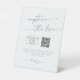 Dieses schicke, aquamarin-weiße Capture-Zeichen der Liebe ist perfekt für eine minimalistische Hochzeit. Das moderne, blau-weiß-grüne böhmische Design besticht durch eine einfache rustikale Kalligraphie mit einem einzigartigen und dennoch klassischen Stil, der an den Küstenstrand und eine Sommerkreuzfahrt erinnert. Geben Sie Ihre Webadresse in den QR-Code-Bereich der Vorlage ein, und der QR-Code aktualisiert und verlinkt automatisch auf Ihre Website.