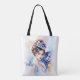 Elegante Tasche mit Aquarellmalerei einer schicken Dame, die einen Hut mit Blume trägt. Schön als Geschenk für die Braut oder Braut zu sein und anpassbar für jede andere Situation.