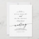 Diese schicke, schwarz-weiße Vorder- und Rückseite-Einladung ist perfekt für eine minimalistische Hochzeit. Das moderne, schwarz-weiße böhmische Design zeichnet sich durch eine einfache rustikale Kalligraphie mit einem einzigartigen und dennoch klassischen Stil aus. Perfekt für jede Jahreszeit: Frühling, Sommer, Herbst oder Winter. Rett Papier, indem man mehr Details auf der Rückseite der Einladung anstatt auf einer separaten Gehäusekarte angibt.