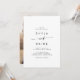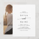 Diese schicke Schwarz-Weiß-Hochzeitseinladung zum lässigen Foto ist perfekt für eine minimalistische Hochzeit. Das moderne, schwarz-weiße böhmische Design zeichnet sich durch eine einfache rustikale Kalligraphie mit einem einzigartigen und dennoch klassischen Stil aus. Perfekt für jede Jahreszeit: Frühling, Sommer, Herbst oder Winter. Personalisieren Sie die Rückseite Ihrer Hochzeit laden Sie mit Ihrem Lieblings-Verlobung-Foto ein.