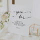 Dieses schicke Schwarz-Weiß-Hochzeitszeichen ist perfekt für eine minimalistische Hochzeit. Das moderne, schwarz-weiße böhmische Design zeichnet sich durch eine einfache rustikale Kalligraphie mit einem einzigartigen und dennoch klassischen Stil aus. Perfekt für jede Jahreszeit: Frühling, Sommer, Herbst oder Winter.