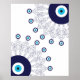 Boho Chic Blue Evil Eye Lucky Mandala Pattern Poster