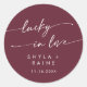 Dieses schicke Bordeaux-Rot in der Liebe mit klassischem Rundaufkleber ist perfekt für eine minimalistische Hochzeit. Der dunkle Maronwein rot moderne böhmische Design bietet einfache rustikale Kalligraphie mit einem einzigartigen und dennoch klassischen Stil. Personalisieren Sie Ihre Gunst-Aufkleber mit Ihren Namen und Hochzeitsdatum.
