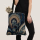 Machen Sie eine einzigartige Aussage mit diesem kühnen Pisley gemustert Tote Tasche. Dunkelblau mit Akzenten von Braun und Sahne. Diese Tasche im Boho-Stil ist Retro-Chic und eine stilvolle Wahl für eine Tasche.