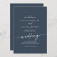 Diese schicke, dunkelmarineblaue Hochzeitseinladung ist perfekt für eine minimalistische Hochzeit. Das modisch-neutrale dunkelblaue, moderne böhmische Design zeichnet sich durch eine einfache rustikale Kalligraphie mit einem einzigartigen und dennoch klassischen Stil aus.