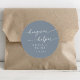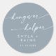 Dieser schicke, staubblaue Kater-Helfer mit klassischem Rundaufkleber eignet sich perfekt für eine minimalistische Hochzeit. Das neutrale hellblaue graue moderne böhmische Design zeichnet sich durch eine einfache rustikale Kalligraphie mit einem einzigartigen und dennoch klassischen Stil aus. Personalisieren Sie Ihre Gunst-Aufkleber mit Ihren Namen und Hochzeitsdatum.