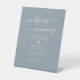 Diese schicke blaue Hochzeit in einem liebevollen Erinnerungsschild ist perfekt für eine minimalistische Hochzeit. Das neutrale hellblaue graue moderne böhmische Design zeichnet sich durch eine einfache rustikale Kalligraphie mit einem einzigartigen und dennoch klassischen Stil aus. Personalisieren Sie Ihr Trauungszeichen mit den Namen Ihrer verstorbenen Lieben.
