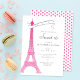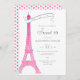 Eine elegante, stilvolle, schicke und minimalistische Sweet 16-Party Einladung im Pariser Stil mit einem Eiffelturm, der von rosa Magentakern bedeckt ist, einer einfachen Typografie und einem Herzmuster auf der Rückseite.