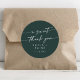 Dieses schicke Smaragdgrün mit einem süßen Dankeschön für den klassischen Rundaufkleber ist perfekt für eine minimalistische Hochzeit. Das dunkle und launische Jägerwald grün moderne böhmische Design bietet einfache rustikale Kalligraphie mit einem einzigartigen und dennoch klassischen Stil. Personalisieren Sie Ihre Gunst-Aufkleber mit Ihren Namen und Hochzeitsdatum.