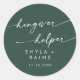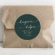 Dieser elegante smaragdgrüne Kater-Helfer mit klassischem Rundaufkleber eignet sich perfekt für eine minimalistische Hochzeit. Das dunkle und launische Jägerwald grün moderne böhmische Design bietet einfache rustikale Kalligraphie mit einem einzigartigen und dennoch klassischen Stil. Personalisieren Sie Ihre Gunst-Aufkleber mit Ihren Namen und Hochzeitsdatum.