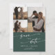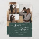 Diese schicke smaragdgrüne Multi-Foto QR Save the Date-Karte eignet sich perfekt für eine minimalistische Hochzeit. Das dunkle und launische Jägerwald grün moderne böhmische Design bietet einfache rustikale Kalligraphie mit einem einzigartigen und dennoch klassischen Stil. Personalisieren Sie Ihre Save the Date mit Ihren Namen, Hochzeitstermin, Ort, 4 Verlobungen Fotos und einem QR-Code, der auf Ihre Hochzeitswebsite verlinkt.