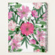 Diese mädchenhafte Frühlingshöhe mit Blume und Blättern, elegantes botanisches Muster, Rose, wilde Frühlingsblumen, japanisches grünes Bambusblättern und Fruchtzweig mit weißen Blume-Blätter, blühenden Naturmustern, Rosa, Korallen, Gelb und Grün, über einem schlichten, weißen Hintergrund, modern, trendig, ideal für Alltag oder Wohngestaltung. Ein stilvolles, trendiges, romantisches Design, einfaches Kunstwerk.