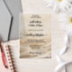 Elegante boho chic Vellum Hochzeitseinladung mit einem abstrakten goldenen Funkeldesign (gedruckt). Die hellen Glitzern verleihen dieser Einladung einen feierlichen und feierlichen Charakter. Bitte beachten Sie, dass ein Foto oder ein anderer Hintergrund separat erworben werden muss.
