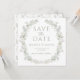 Dieses elegante und raffinierte Foto besticht durch sein elegantes botanisches Design und überzeugt durch seine Save the Date Atmosphäre. Mit üppigen grünen Blätter und zarter weißer Blume ist diese Einladung ein Set für eine naturlich inspirierte Hochzeitsfeier, eine Gartenfeier oder eine Hochzeitsfeier im Freien.