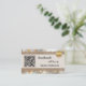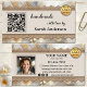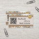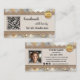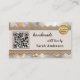 Visitenkarte mit boho schicker Optik mit metallischer Goldspitze auf Leinwand mit glasklarem Hintergrund. Es werden mehrere Vorlagen hinzugefügt: ein QR-Code, ein Logo und soziale Medien. Sie können diese anpassen und die Social-Media-Symbole durch Ihre eigenen Icons ersetzen. Auf der Rückseite ist auch Platz für Ihr eigenes Foto. Eine moderne berufliche Visitenkarte für jeden, der handgemachte Produkte oder Geschenke kreiert.