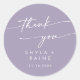 Dieser schicke Lavendel lila danke Ihnen Gastgeschenk Hochzeit klassischen Rundaufkleber ist perfekt für eine minimalistische Hochzeit. Das bunte, staubige lila, moderne böhmische Design zeichnet sich durch eine einfache rustikale Kalligraphie mit einem einzigartigen und dennoch klassischen Stil aus. Personalisieren Sie Ihre Gunst-Aufkleber mit Ihren Namen und Hochzeitsdatum.