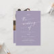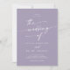 Dieses schicke lila Foto mit QR-Code ist perfekt für eine minimalistische Hochzeit. Das bunte, staubige lila, moderne böhmische Design zeichnet sich durch eine einfache rustikale Kalligraphie mit einem einzigartigen und dennoch klassischen Stil aus. Personalisieren Sie die Rückseite Ihrer Hochzeit laden Sie mit Ihrem Lieblings-Verlobung-Foto ein. Fügen Sie einen QR-Code für Gast ein, um einfach UAWG, Details anzeigen oder beides.