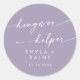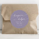 Der lila Kater-Helfer mit seinem schicken Lavendel-Kater und dem klassischen Rundaufkleber eignet sich perfekt für eine minimalistische Hochzeit. Das bunte, staubige lila, moderne böhmische Design zeichnet sich durch eine einfache rustikale Kalligraphie mit einem einzigartigen und dennoch klassischen Stil aus. Personalisieren Sie Ihre Gunst-Aufkleber mit Ihren Namen und Hochzeitsdatum.