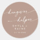 Dieser schicke, neutrale Taupe-Helfer mit klassischem Rundaufkleber eignet sich perfekt für eine minimalistische Hochzeit. Der beige braune Erdenton des modernen böhmischen Designs zeichnet sich durch eine einfache rustikale Kalligraphie mit einem einzigartigen und dennoch klassischen Stil aus. Personalisieren Sie Ihre Gunst-Aufkleber mit Ihren Namen und Hochzeitsdatum.