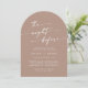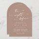 Diese schicke, neutrale Taupe Bogen Probe-Dinner-Einladung ist perfekt für einen minimalistischen Abend vor der Hochzeitsfeier Probe. Der beige braune Erdenton des modernen böhmischen Designs zeichnet sich durch eine einfache rustikale Kalligraphie mit einem einzigartigen und dennoch klassischen Stil aus. Perfekt für jede Jahreszeit: Frühling, Sommer, Herbst oder Winter.