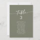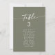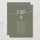 Diese eleganten, olivengrün hängenden Sitzkarten sind perfekt für eine minimalistische Hochzeit. Der woodsy dunkelgrüne Erdton moderne böhmische Design zeichnet sich durch einfache rustikale Kalligraphie mit einem einzigartigen und dennoch klassischen Stil aus. Dieses Sitzdiagramm kann auf dem Tisch oder als hängende Sitzkarten verwendet werden. Das Design druckt vorne und hinten. Personalisieren Sie jede Tischnummer, die Sie benötigen, und fügen Sie jede einzeln in Ihren Warenkorb ein.