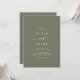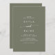 Diese lässige Hochzeitseinladung mit schicker Olivgrün ist perfekt für eine minimalistische Hochzeit. Der woodsy dunkelgrüne Erdton moderne böhmische Design zeichnet sich durch einfache rustikale Kalligraphie mit einem einzigartigen und dennoch klassischen Stil aus.