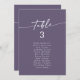 Diese lila Sitzkarten aus boho-schicken Pflaumen eignen sich perfekt für eine minimalistische Hochzeit. Das moderne böhmische Design des lila Schmucktöns besticht durch eine schlichte rustikale Kalligraphie mit einem einzigartigen und dennoch klassischen Stil. Dieses Sitzdiagramm kann auf dem Tisch oder als hängende Sitzkarten verwendet werden. Das Design druckt vorne und hinten. Personalisieren Sie jede Tischnummer, die Sie benötigen, und fügen Sie jede einzeln in Ihren Warenkorb ein.