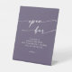Dieses lila, schicke Pflaumenschild mit offenem Bar eignet sich perfekt für eine minimalistische Hochzeit. Das moderne böhmische Design des lila Schmucktöns besticht durch eine schlichte rustikale Kalligraphie mit einem einzigartigen und dennoch klassischen Stil. Perfekt für jede Jahreszeit: Frühling, Sommer, Herbst oder Winter.