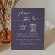 Dieses schicke Pflaumenspiel lila teilt die Liebe QR-Zeichen ist perfekt für eine minimalistische Hochzeit. Das moderne böhmische Design des lila Schmucktöns besticht durch eine schlichte rustikale Kalligraphie mit einem einzigartigen und dennoch klassischen Stil. Geben Sie Ihre Webadresse in den QR-Code-Bereich der Vorlage ein, und der QR-Code aktualisiert und verlinkt automatisch auf Ihre Website. Personalisieren Sie das Zeichen mit Ihrem Hochzeitshashtag für das Teilen von Fotos auf sozialen Medien.