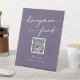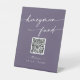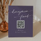 Dieses schicke Pflaumenschild mit lila Hochzeitsfeier ist perfekt für eine minimalistische Hochzeit. Das moderne böhmische Design des lila Schmucktöns besticht durch eine schlichte rustikale Kalligraphie mit einem einzigartigen und dennoch klassischen Stil. Geben Sie Ihre Webadresse in den QR-Code-Bereich der Vorlage ein, und der QR-Code wird automatisch aktualisiert und auf Ihre Website oder App gelinkt. Personalisieren Sie die Zeichen mit Ihren Namen.