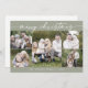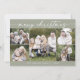 Boho Chic Sage Green Foto Boho Frohe Weihnachtskarte. Der neutrale, hellgrüne Erdenton des modernen böhmischen Designs zeichnet sich durch eine einfache rustikale Kalligraphie mit einem einzigartigen und dennoch klassischen Stil aus. Personalisieren Sie die Vorderseite Ihrer Weihnachtskarten mit dem Jahr, Ihrem Familiennamen und einem Foto. Fügen Sie eine personalisierte Urlaubsgrüßbotschaft auf der Rückseite ein.