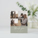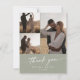 Diese schicke, grüne Foto-Collage Dankeschön-Karte ist perfekt für eine minimalistische Hochzeit. Der neutrale, hellgrüne Erdenton des modernen böhmischen Designs zeichnet sich durch eine einfache rustikale Kalligraphie mit einem einzigartigen und dennoch klassischen Stil aus. Personalisieren Sie die Karte mit drei Fotos Ihres Hochzeitstages, Ihren Namen und Ihr Hochzeitstag. Löschen Sie den Beispieltext auf der Rückseite der Karte, damit Sie jedem Gast eine gründliche Notiz übergeben oder eine Nachricht drucken lassen können.