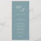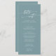 Dieses schicke Meeresfrüchte-aquamarin Dankeschön und das Hochzeitsmenü sind perfekt für eine minimalistische Hochzeit. Das farbenfrohe blaugrüne, moderne böhmische Design besticht durch eine einfache rustikale Kalligraphie mit einem einzigartigen und dennoch klassischen Stil, der an den Strand, das Meer und die Sommerküste erinnert. Personalisieren Sie die Rückseite Ihrer Speisekarte mit einem nachdenklichen Dankeschön an Ihre Gäste, Freunde und Familie.
