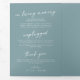 Dieses schicke aquamarine Hochzeitsdreifachprogramm mit Monogramm Meeresfrüchte eignet sich perfekt für eine minimalistische Hochzeit. Das farbenfrohe blaugrüne, moderne böhmische Design besticht durch eine einfache rustikale Kalligraphie mit einem einzigartigen und dennoch klassischen Stil, der an den Strand, das Meer und die Sommerküste erinnert. Personalisieren Sie Ihr Hochzeitsprogramm mit Ihren Initialen, Namen, Hochzeitsdatum und Ort, Ihrem Lieblings-Zitat oder Lyrik, Dienstorden, Hochzeitsfeier, in liebevoller Erinnerungsnachricht, nicht gestapelte Zeremonie-Nachricht, einem Dankeschön-Hinweis und einem Foto.