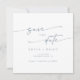 Dieses schicke, blau-quadratische Foto Save the Date ist perfekt für eine minimalistische Hochzeit. Das moderne böhmische Design in blass staubigen Blau und Weiß ist einfach rustikal und mit einem einzigartigen und dennoch klassischen Stil. Personalisieren Sie Ihre Save the Date mit Ihren Namen, Hochzeitstermin, Ort, Verlobung Foto und Ihrer Hochzeitswebsite-Adresse.