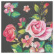 Diese elegante, mädchenhafte, bunt blühende Rose mit Frühlingsblumen, Aquarellfarbe auf dunkelgrauem Hintergrund, ist ideal für den Alltag, für Wohngestaltung oder besondere Anlässe. Eine romantische, einzigartige, stilvolle, lebendige, fröhliche, junge, moderne, hübsche, Vintage Kollektion von Rose, Blume, Blätter, in rosa, blau, aquamarin, gelb, lila, schwarz, grau, weiß illustriert.