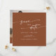 Dieses schicke Terracotta-quadratische Foto Save the Date ist perfekt für eine minimalistische Hochzeit. Das erdig verbrannte, moderne böhmische Design zeichnet sich durch eine einfache rustikale Kalligraphie mit einem einzigartigen und dennoch klassischen Stil aus. Personalisieren Sie Ihre Save the Date mit Ihren Namen, Hochzeitstermin, Ort, Verlobung Foto und Ihrer Hochzeitswebsite-Adresse.