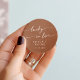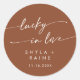 Diese schicke Terracotta, die in der Liebe einen klassischen Rundaufkleber bevorzugen, eignet sich perfekt für eine minimalistische Hochzeit. Das erdig verbrannte, moderne böhmische Design zeichnet sich durch eine einfache rustikale Kalligraphie mit einem einzigartigen und dennoch klassischen Stil aus. Personalisieren Sie Ihre Gunst-Aufkleber mit Ihren Namen und Hochzeitsdatum.