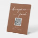 Dieses schicke Terracotta Hochzeitsflitterwochen Freiburger Podestschild ist perfekt für eine minimalistische Hochzeit. Das erdig verbrannte, moderne böhmische Design zeichnet sich durch eine einfache rustikale Kalligraphie mit einem einzigartigen und dennoch klassischen Stil aus. Geben Sie Ihre Webadresse in den QR-Code-Bereich der Vorlage ein, und der QR-Code wird automatisch aktualisiert und auf Ihre Website oder App gelinkt. Personalisieren Sie die Zeichen mit Ihren Namen.