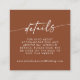 Diese schicke Terracotta Ehe QR Code Details Gehäuse Karte ist perfekt für eine minimalistische Hochzeit. Das erdig verbrannte, moderne böhmische Design zeichnet sich durch eine einfache rustikale Kalligraphie mit einem einzigartigen und dennoch klassischen Stil aus. Geben Sie Ihre Webadresse in den QR-Code-Bereich der Vorlage ein, und der QR-Code aktualisiert und verlinkt automatisch auf Ihre Website.