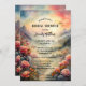 Boho schicke Brautdusche mit romantischer Aquarelllandschaft mit bunten Blume und Schmetterlingen bei Sonnenuntergang.