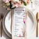 Feiern Sie stilvoll mit diesem Abschluss mit boho Wildblumen, das in sanften Rosa-, lila- und Pfirsichtönen mit handbemalten Aquarellbildern gestaltet wurde. Ideal, um Ihre Abschluss-Feier, Ihr Brautparty oder Ihr Party mit einer eleganten, personalisierten Touch zu bereichern. Diese große Speisekarte eignet sich ideal, um sich an jedem Tisch zu platzieren und dabei den Charme mit einem frisch vom Garten inspirierten Ambiente zu verbinden.