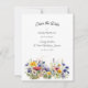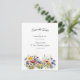 Boho Chic front with colorful, watercolor blue, red, yellow and white wildflower border with a splash of gold on white background. On back, a modern 3 photo collage for photos of the couple. All templates provided to make this easily ready for getting ready for your special day.