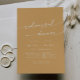 Diese schicke, gelbe Hochzeitsfeier lädt zum Probe-Dinner ein, um einen minimalistischen Abend vor der Hochzeitsfeier zu verbringen. Das farbenfrohe, kräftig gelbe und moderne böhmische Design zeichnet sich durch eine einfache rustikale Kalligraphie mit einem einzigartigen und dennoch klassischen Stil aus.