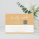 Diese schicke, gelbe E-Mail in und QR Code rsvp Karte ist perfekt für eine minimalistische Hochzeit. Das farbenfrohe, kräftig gelbe und moderne böhmische Design zeichnet sich durch eine einfache rustikale Kalligraphie mit einem einzigartigen und dennoch klassischen Stil aus. Geben Sie Ihren Gästen die Möglichkeit, ihre rsvp-Karte zu schicken oder einfach online mit dieser QR-Code-Antwortkarte zu antworten. Geben Sie Ihre Webadresse in den QR-Code-Bereich der Vorlage ein, und der QR-Code aktualisiert und verlinkt automatisch auf Ihre Website.