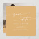 Dieses schicke, gelbe, eckige Foto Save the Date ist perfekt für eine minimalistische Hochzeit. Das farbenfrohe, kräftig gelbe und moderne böhmische Design zeichnet sich durch eine einfache rustikale Kalligraphie mit einem einzigartigen und dennoch klassischen Stil aus. Personalisieren Sie Ihre Save the Date mit Ihren Namen, Hochzeitstermin, Ort, Verlobung Foto und Ihrer Hochzeitswebsite-Adresse.